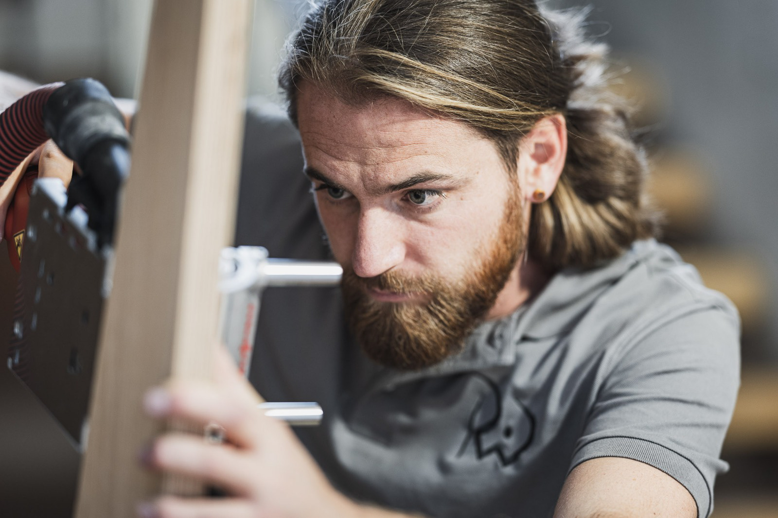 Hallo, ich bin Richard. Denker, Tüftler, Handwerker. Schon als Kind war ich vernarrt ins Handwerk, hab meinem Opa stundenlang aufmerksam beim Schnitzen zugesehen und dann irgendwann einfach selbst Hand angelegt, fasziniert von der Möglichkeit, Werkstoff zu formen und damit Neues zu schaffen. Heute ist es vor allem die Musik und ganz generell meine weltoffene Haltung, die mir Inspiration für meine Arbeiten gibt. Getrieben von der Neugier sowie der Lust auf Neues auf der einen Seite und mit fachlichem Wissen, perfektem Equipment, wertigen Materialien und einer penibel genauen Arbeitsweise auf der anderen.